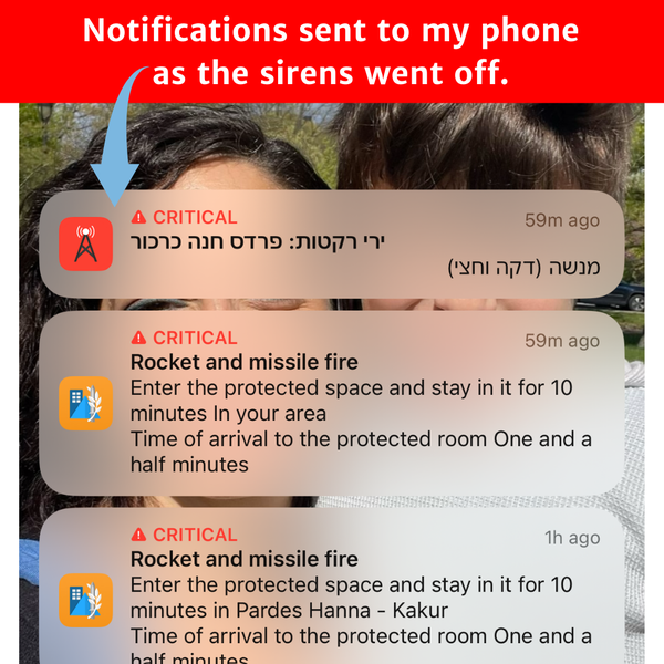 When I got off the airplane in Tel Aviv 3 days earlier, the first thing the taxi driver had me do was download two apps – one called Home Front Command and the other Red Alert. These apps let you know when rockets are heading your way.