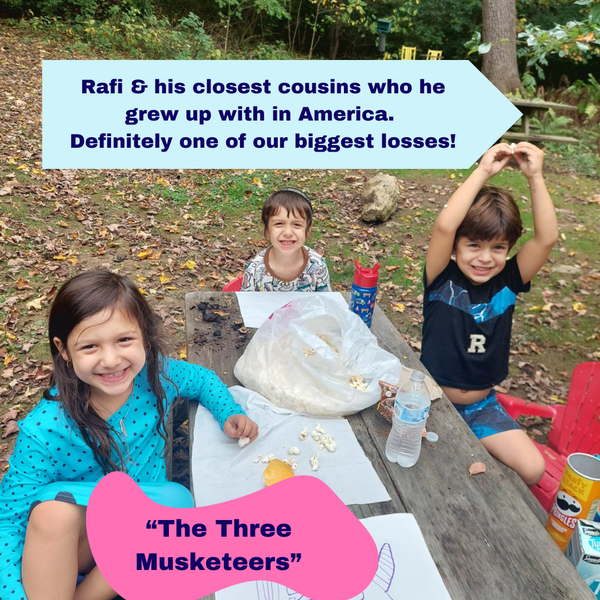 That being said, it definitely softened the blow that we also have a loving family here in Israel as well. And we moved to their town to maintain a lifestyle where we were around family on a regular basis. Just different family members.